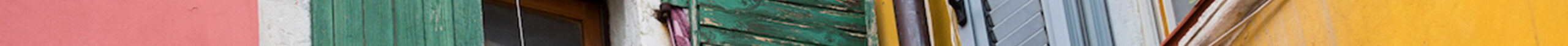 Vier Fenster mit verblassten grünen Holzläden durchbrechen das gleichmäßige Muster der Wand. Manche geschlossen wie Augen im Schlaf, andere vielleicht nur halb geöffnet, bereit, ein Stück Geschichte hinaus zu lassen. Oben schließt das Dach mit einer Reihe alter Terrakotta-Ziegel ab, dahinter das weiche Blau des Himmels – eine ruhige Fläche, die den Blick über die vertikale Strenge hinausführt.